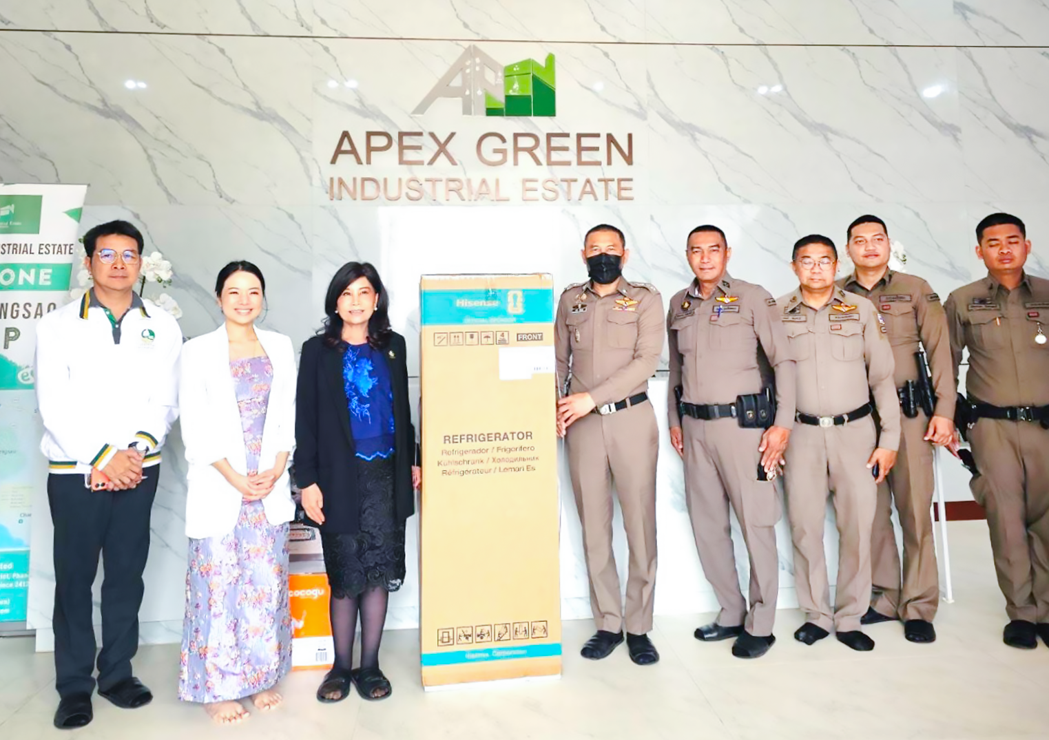 วันที่ 20 มกราคม ที่ผ่านมา นิคมเอเพ็กซ์กรีนฯ นำโดยคุณชัญญาพัชญ์ จารุศักดิ์กิจชัย , คุณนนันต์ทิกานต์ ดำเนินชาญวนิชย์ และคุณพัสกร บุญเจริญ สนับสนุนงบประมาณกว่า 7,000 บาท เพื่อจัดซื้อของรางวัลปีใหม่ ประกอบไปด้วย ตู้เย็น หม้อทอดไร้น้ำมัน และเตาปิ้งย่างสุกี้บาร์บีคิว มอบให้แก่สถานีตำรวจภูธรแปลงยาว เนื่องในโอกาสที่ทางสถานีตำรวจ จะจัดเลี้ยงวันปีใหม่ 2569 ให้แก่เจ้าหน้าที่ตำรวจและครอบครัว